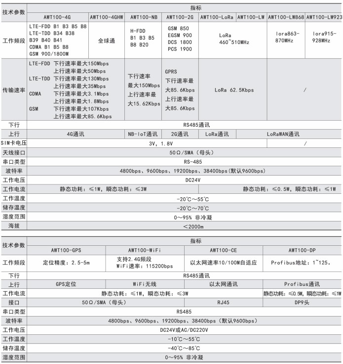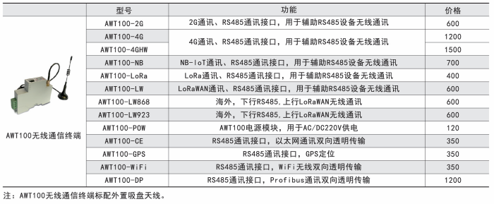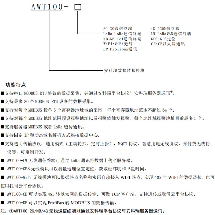 注:①AWT100-2G/NB/4G無線通信終端能通過安科瑞平臺協(xié)議與安科瑞服務(wù)器通訊。