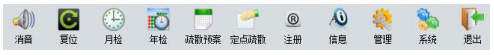 工具欄圖標(biāo)如圖5所示,消音:用于關(guān)閉報警提示聲音;復(fù)位:將處于非正常狀態(tài)下的監(jiān)控系統(tǒng)復(fù)位至正常
