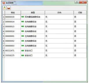 定點(diǎn)疏散功能允許有管理員權(quán)限的用戶在緊急情況下手動啟動報警點(diǎn),根據(jù)實(shí)際火警信息提供疏散預(yù)案以外的疏散路徑。在工具欄中點(diǎn)擊“定點(diǎn)疏散”,如圖11所示,可對當(dāng)前圖層設(shè)備點(diǎn)進(jìn)行手動點(diǎn)亮。在“方向”一欄雙擊,可選擇指示燈點(diǎn)亮方向;在“閃爍”一欄雙擊,可選擇燈具是否閃亮,默認(rèn)為長亮。允許同時對多個設(shè)備設(shè)置點(diǎn)亮方向和閃亮模式。