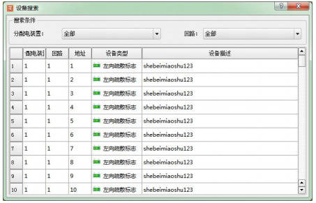 工具欄中點(diǎn)擊“搜索設(shè)備”,如圖14所示。在分配電裝置和回路的下拉菜單欄中選擇所需的裝置和回路。雙擊某條設(shè)備信息,可直接在疏散平面圖中定位到該設(shè)備。