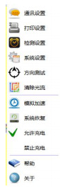 系統(tǒng)設(shè)置子菜單如圖18所示。該頁面可進(jìn)行通訊設(shè)置、打印設(shè)置、檢測設(shè)置、系統(tǒng)設(shè)置、燈具方向測試及清除光流。