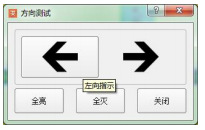 方向測試窗口如圖21所示,是為了檢測指示燈具安裝方向的正確性和一致性,即指示燈具安裝完成后,需檢查指示燈具安裝的方向與定義的方向是否一致。直接單擊某個方向,該方向的箭頭將變?yōu)榫G色,同時該方向的指示燈應(yīng)全部點(diǎn)亮。
