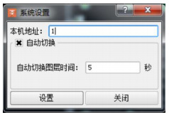 系統(tǒng)設(shè)置窗口如圖22所示,可設(shè)置當(dāng)前本機(jī)的地址編號和圖層的自動切換及時間。本機(jī)地址編號用于CAN通訊地址設(shè)定;自動圖層的切換,則可以查看不同的疏散分區(qū)狀態(tài)。