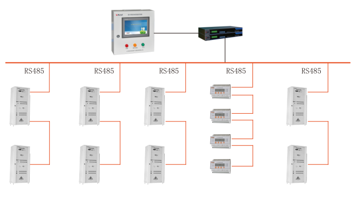 IT配電監(jiān)測(cè)系統(tǒng)以計(jì)算機(jī)(或觸摸屏)、通訊設(shè)備、測(cè)控單元為基本工具,采用現(xiàn)場(chǎng)總線進(jìn)行組網(wǎng),為各類場(chǎng)所IT配電系統(tǒng)的實(shí)時(shí)數(shù)據(jù)采集及遠(yuǎn)程管理與控制提供了基礎(chǔ)平臺(tái)。其層次結(jié)構(gòu)如下所示: